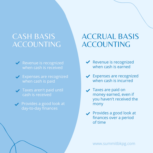 Net income calculation | Net income is calculated based on the cash that flows in and out. Can be very inaccurate | Net income is calculated by factoring the precise revenue and related expenses, which is more accurate |
